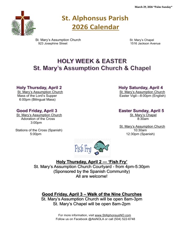 In the tradition of our immigrant founders, St. Alphonsus Parish continues to be a welcoming and caring Roman Catholic community of faith.  We are inspired by the Holy Spirit, formed by the Gospel under the mantle of Mary, Our Mother of Perpetual Help, and since 1843 served by the Redemptorists, men of faith such as Blessed Francis Xavier Seelos.  We are committed to carry forward a living history that shapes us into a Eucharistic community which strives for a more just society through service to each other and to the community.